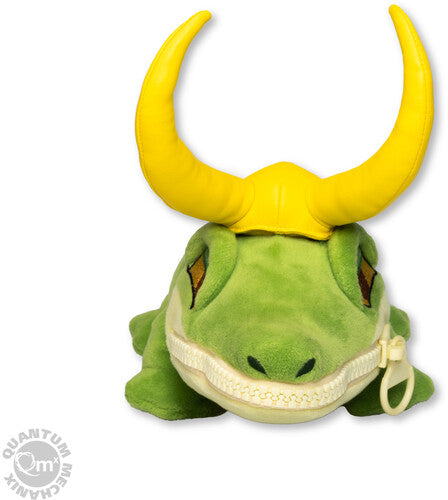 Our 12-inch long Alligator Loki Zippermouth™ features his green scales and iconic gold crown. Unzip the God of Mischief’s mouth, and a presidential Loki button is exposed. Wonder where he got that?